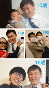 12歳のときは少年野球のユニフォーム、13歳は中学校の制服、14歳はマスク姿で…。