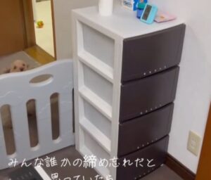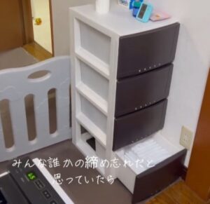 キッチンを利用する際、収納ボックスの横を通る度に、1番下の引き出しが開いていました。それが1週間ほど続き、お母さんと彼女さんの閉め忘れだと思っていた飼い主さん。