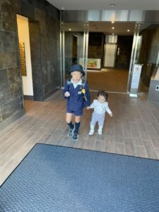 お風呂上りに妹さんに服を着せてくれることもあるとのこと。妹さんは、ママさんに叱られると次男さんの後ろにサッと隠れますが、それもかわいいようでつい甘やかしてしまうそうです。