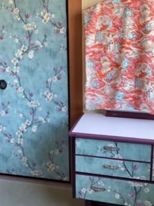 また、作業は何段階にも分けて行いました。一気にするのではなく、引き出しは洗ってから拭き、干して、色を塗って、乾かして…と、ゆっくり時間をかけて丁寧に考えながら作業しました。生活の合間をぬって、1ヶ月半くらいかけて進めたとのこと。