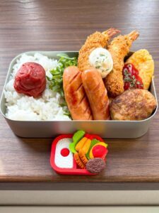 そんな経緯で作ったお弁当は、ウインナーやエビフライが入っており、おもちゃのお弁当が上手に再現されていました。サイズ感にも気を配って作ったお弁当は、バランスも見事でパパさんのこだわりが感じられます。