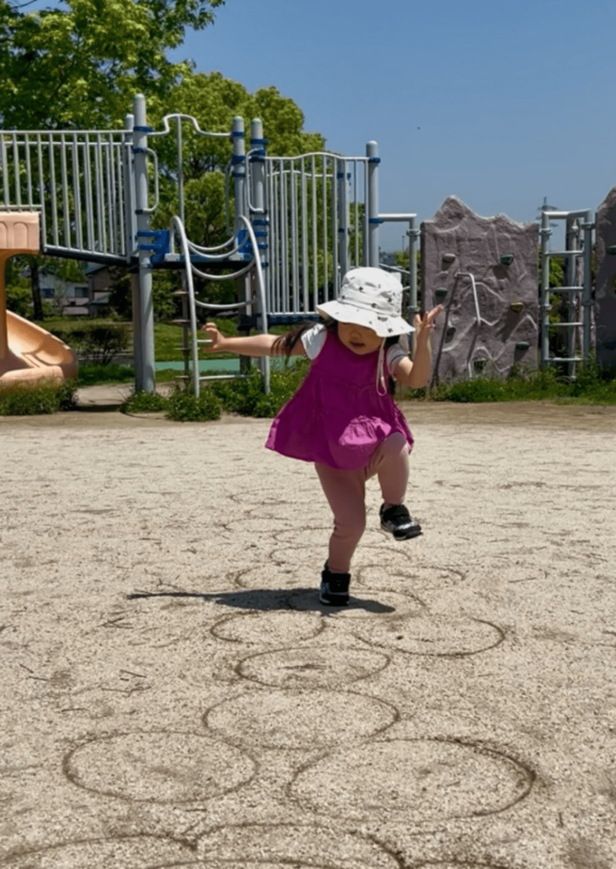 公園でけんけんぱする2歳娘 しかし、よく見ると…「可愛すぎてニヤニヤ」「笑った」「癒されました」