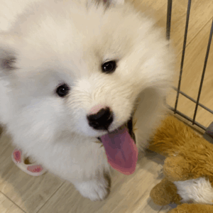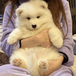 生後2ヶ月の頃、飼い主さんのもとにやってきた、サモエドの女の子・こはくちゃん。