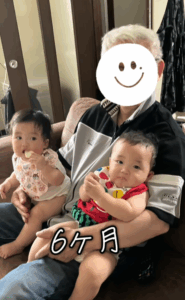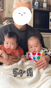 双子の孫たちが生後3ヶ月の頃からスタートした“抱っこ記念撮影”。