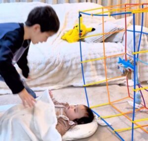 7歳のお兄ちゃんは、生後5ヶ月の妹さんにベビージムを作ってあげました。