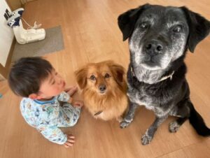 「この犬2匹は、父母が先代犬が亡くなった後に迎えた保護犬たちで、息子にはペットは飼う以外にも選択肢があるのだと学んでほしいなと思っています」とママさん。