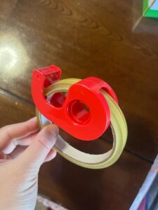 その後お母さんは、大きいタイプのセロハンテープをハサミで切って使っていましたが、面倒になったようで、小さいテープカッターのカッター部分だけ使っていたそう。そして「もしかしたら?」と思ったお母さんがテープカッターを装着してみたところ、大きいサイズのテープも幅が一緒だったため、うまくハマったのだとか。