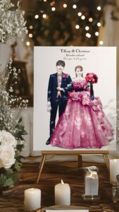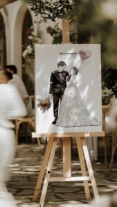 以前、ある花嫁さんから「写真よりも私たちらしい」「ちゃんみなさんにお願いして良かった」と言われ、やりがいを感じました。また私服の写真しかない方から「ドレス姿で描いてほしい」と依頼され、ポーズや試着の写真をもとに仕上げると、本当にその日を迎えたかのような温かい気持ちになったそうです。