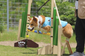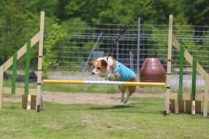 アジリティーを楽しんでいたアインくん。一見、上手に跳び越えているように見えますが…実はお腹が引っかかっていました。