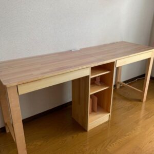 おじいちゃんは、家の扉や棚などを作る建具屋をしており、木の工作に関してはプロ。双子ちゃんたち用の机も作ってくれたことがあります。現在は、小学生になった双子ちゃんたちのために、ランドセル置きの棚を作っている最中です。