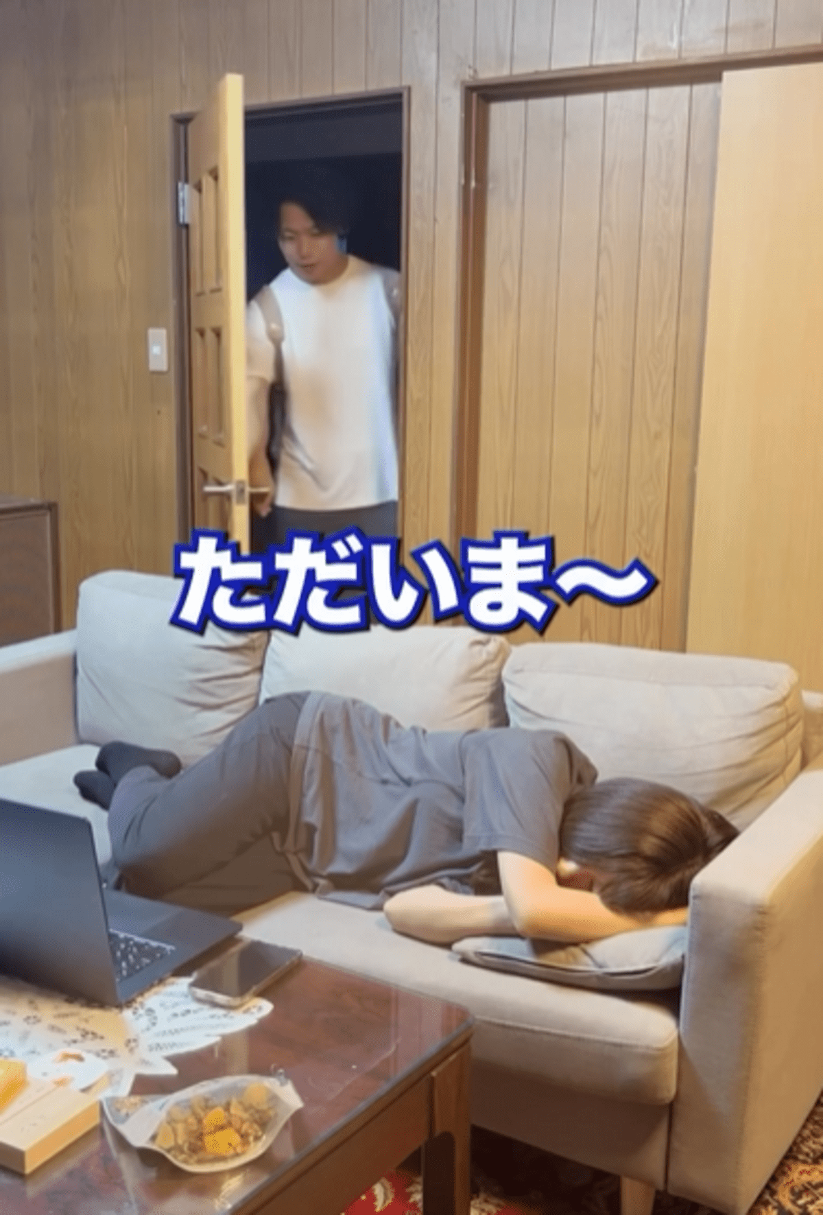 ソファでおにぎりを食べる1歳息子 しかしよく見ると…母「!?」すべてを察した母の投稿に「可愛いから許す!」「現行犯〜」