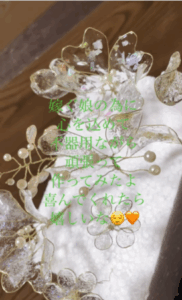 娘さんにベールとヘアアクセサリーの出来上がりを見せると「凄いね」と喜んでくれたそう。