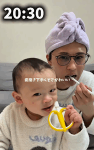 「ぐずると大変ですし、寝る時間がズレると自分の時間も確保しづらくなるので、子どもの時間管理は意識しています!」とも話してくれました。