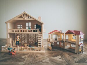 2年前、娘さんが4歳を迎えた直後のクリスマスプレゼントに、おじいちゃんに作ってもらったドールハウス。娘さんがキャラクターでごっこ遊びにハマっているのを見たママさんが、おじいちゃんにドールハウスを依頼したとのこと。