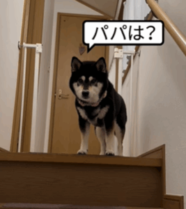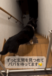 家のリビングは2階、寝室は1階にあるため、あずきちゃんは、2階の階段の上から玄関を見つめていました。