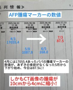 驚くことに、あずきちゃんが旅立って8日後の診察で、パパさんに残っていた腫瘍が10cmから4cmへと一気に縮小。