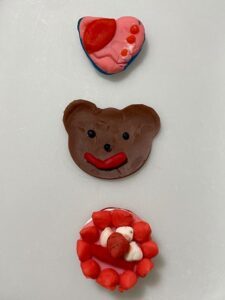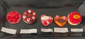 将来、パティシエになることを夢見る娘さん。作品づくりで工夫した点を聞くと、イチゴの形を綺麗にすることと、粘土が6色しかなかったため、粘土を何色か混ぜて、好きな色を作るのが大変だったそうです。