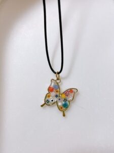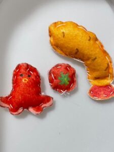 粘土遊び以外にも、普段からブレスレット作りや、編み物、ネックレス作り、レジン、アイロンビーズ、裁縫など、さまざまな手芸に挑戦しているという娘さん。