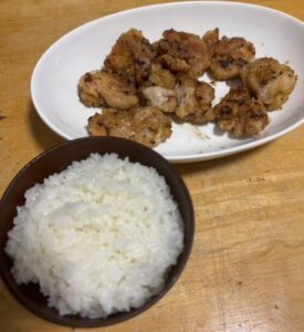 友達と外食する日以外は、ほぼ毎日自炊しているとのこと。キムチ納豆ご飯やうどんなど、簡単な日もたくさんありますが、ネットでレシピを探してミルフィーユ鍋や唐揚げ、炊飯器で作るカオマンガイ、ハンバーグを作ることも。