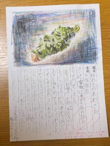 息子さんが日記の絵を描いていたとき、あまりにもわさびが上手に描けていたので、ママさんはパパさんと一緒に驚いたといいます。
