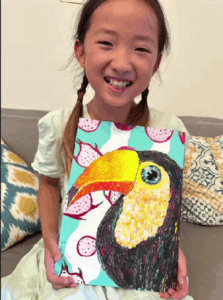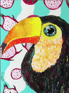 9歳の夏に、メキシコに行く機会があった娘さん。そのときに見たビビッドカラーのドラゴンフルーツにはまった娘さんは、そこからインスピレーションを受け1枚の絵を描きました。