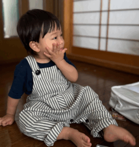 料理中の後ろをちょこちょこ付いて行ったり、ビデオ通話でも笑顔で振ったり、いつも楽しそうに遊んでいるといいます。