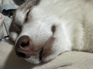 ういちゃんの泥まみれになった姿は、他のハスキーの飼い主さんが撮ってくれた1枚でした。