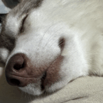 お兄ちゃんハスキーのご飯を狙ってるういちゃん(@eri_l0x0l_eriさんより提供)