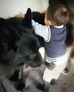 そんなエクくんに、興味津々で近付いていく息子さん。ハイハイしていたときから近付いていくものの、エクくんはあまり対応せず、スッと離れることが多かったとのこと。