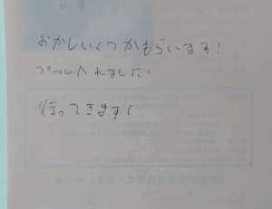 メモには「プール」のことも書いてありましたが、朝に小雨が降っていたので「今日はプールに入れないかもね」と登校前に話していたそうで、覚えていてくれたことにママさんは心温まります。