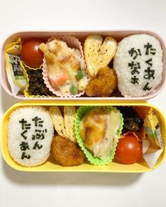 旦那さんからあまり反応はありませんが「たくあんかもに唐揚げ入ってたぞ」と笑いながら指摘されたことがあるといいます。