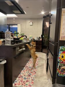 子犬期から食欲が旺盛なまめたくん。ごはん欲しさに「ちょうだい、ちょうだい」とおねだりがエスカレートすると、本当に二本立ちすることもあるそう。