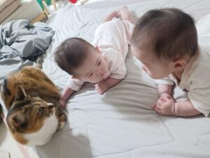 ママ(@aiko.3cats)さんが、2人と1匹の写真をThreadsに投稿すると「にゃんこ監視官」「可愛すぎる」などのコメントが寄せられ、話題になっています。