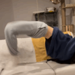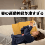 ソファで仰向けになってスマホを見ている奥さん(@tadanohito12214さんより提供)