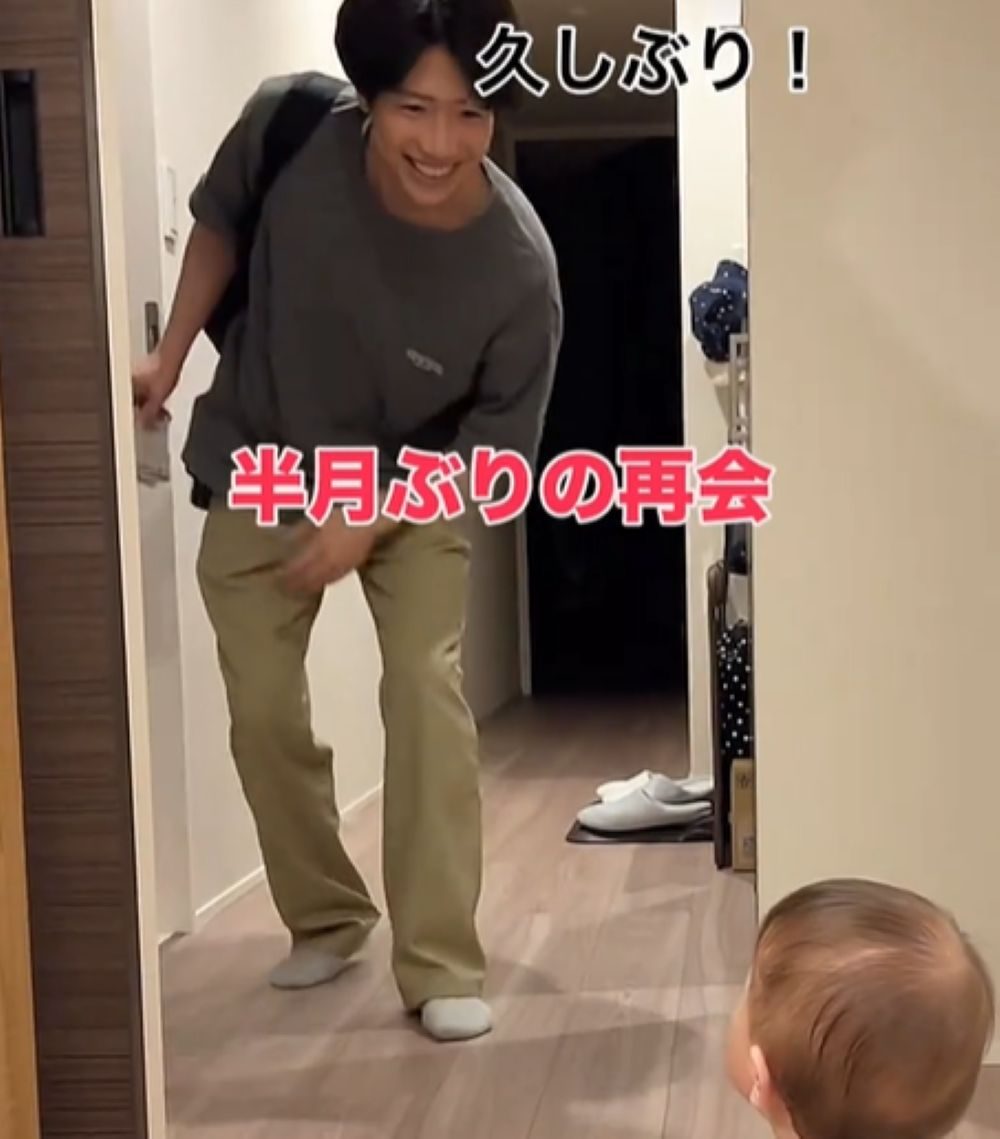 「忘れられてないかな…」半月ぶりに生後10ヶ月の息子と再会したパパ。久しぶりの親子の時間に「尊すぎる」「ニヤニヤが止まらない」