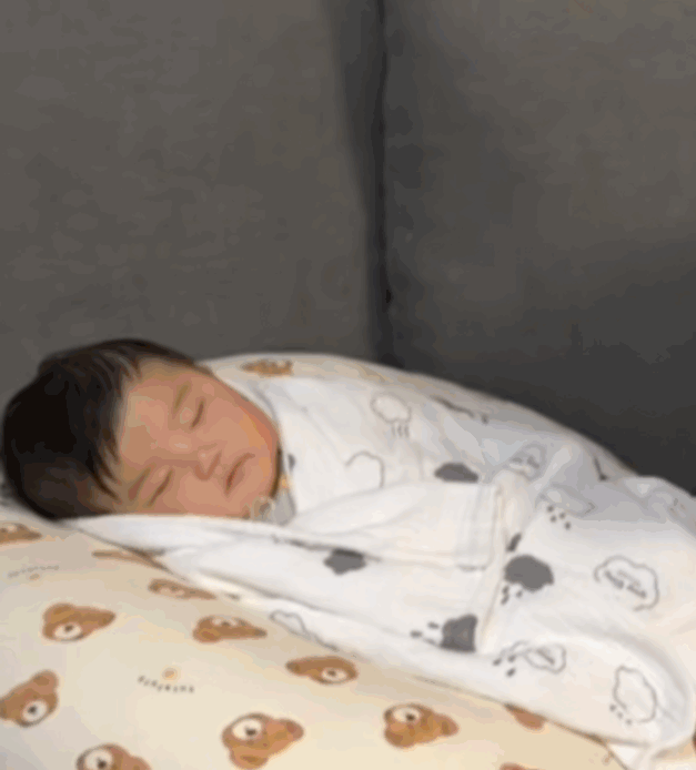 寝ている赤ちゃん。しかし、隣をよく見ると…「お利口すぎる」「癒やされる」