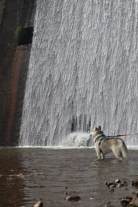 投稿前日、珀くんと一緒に川遊びに行ったという@husky_0319さん。滝を背景に撮った珀くんの写真を見返してみると…。