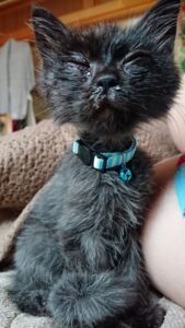 鼻がきかなかったせいか、ご飯はあまり食べられず、目ヤニで目も開けられなかったため、@muni_muni0221さんは濡らしたティッシュでそっと拭き取り、1日に何度もケアしました。