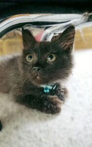 しばらくするうちに姿が見えなくなったため、@muni_muni0221さんが探してみると、車のタイヤの上にのっていたなすくん。抱き上げて膝の上にのせると、それまで鳴いていたなすくんはピタリと鳴きやみ、ウトウトし始めます。