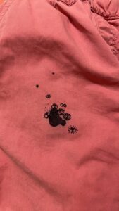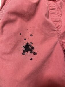 ママさんは、シミを見たときに「今日、習字だったか…。落ちるかな?」と思い、洗剤に付け置きして擦ってみましたが、落ちなかったそうです。