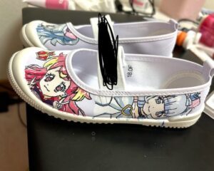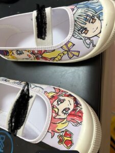 上履きのペイントに使ったのは、布用のアクリル絵の具。しかしながら、キャラクターのイラストを忠実に再現するためには、色の調合が必要です。