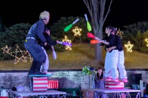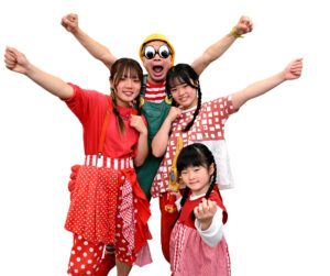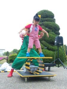パパさんたちは、家族で大道芸を行っています。現在は、パパさんと三女のゆうかちゃんと2人でパフォーマンスをし、ママさんは現場監督のような形で活動しています。