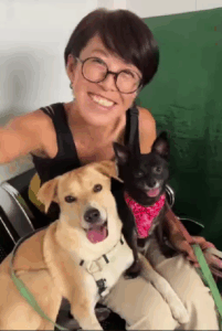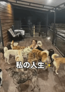 動画では、たくさんのワンちゃんたちに囲まれ、はじけるような笑顔の投稿者さんが映し出されています。実はワンちゃんたちはすべて保護犬。投稿者さんは現在、インドネシアのバリ島で保護犬活動を行っているのです。