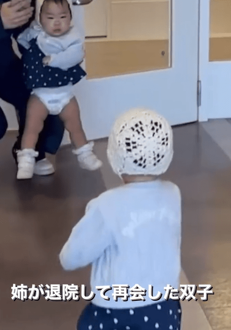 1歳双子の姉の退院日 久しぶりに再会した姉妹の様子に…「泣けた」「2人揃ってないとね」 →1年後の様子を聞いた