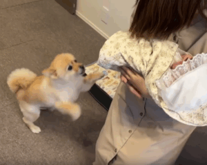 そしてママさんは無事に出産し、娘さんが誕生。娘さんと初対面のときには「赤ちゃんを見せて!」と言わんばかりに立ち上がり、大歓迎してくれたそうです。