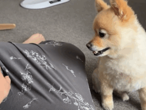 @pome_pome_purinさんの愛犬、ポメくん(10歳)の行動に変化が現れたのは、ママさんが妊娠9ヶ月に差し掛かった頃。