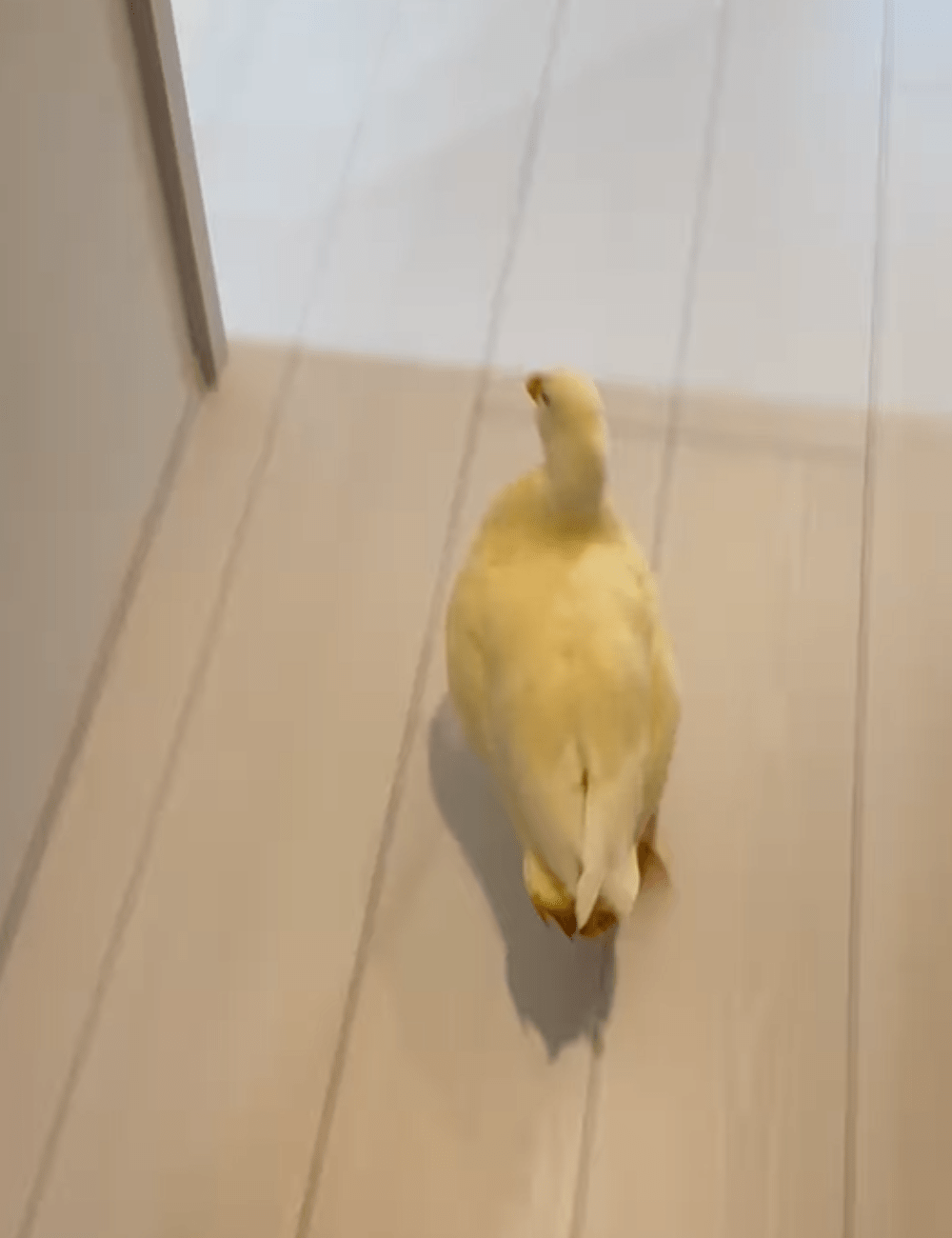 「倍速かと思った」全力疾走するアヒルが向かった先は…脱衣所!?その理由を知り「せわしなさすぎる」「お腹すいてたのかな」