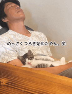 @koban0726turuhime1129さんが、寝ているパパさんの腕の中でくつろぐ子猫の動画をInstagramに投稿すると「可愛い過ぎ」「空間が平和」「大物感あり」などのコメントが寄せられ、話題になっています。