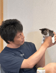 そこに映っていたのは、初めて会ったはずの男性にも物怖じせず「何かご用ですか?」と言いたげにカメラ目線を決める小鼓くんの姿でした。この堂々とした態度に心をつかまれ、子猫の保護に反対していたパパさんの気持ちは一変したといいます。