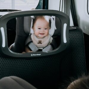 @_suichanmanさんが、娘さんを保育園に迎えに行った帰り道、運転席からベビーミラー越しに娘さんの様子を確認すると、ニコニコ笑顔にホッコリ。